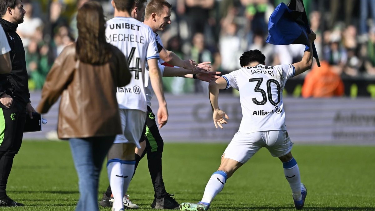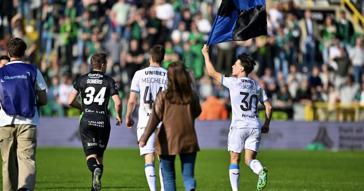 Maç sonu Club Brugge'un oyuncusu Ardon Jashari, eline takımının bayrağını alarak orta sahaya doğru koşmaya başladı.