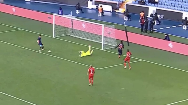 Yaklaşık bir metre mesafeden yapılan vuruş sonrası topun auta gitmesi, görenleri şaşkına çevirdi.