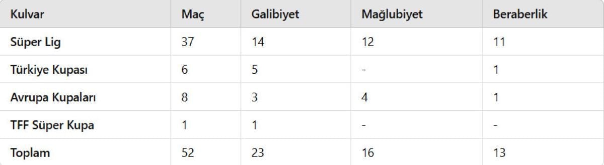 Süper Lig’de toplam 37 maçta 14 galibiyet, 12 mağlubiyet ve 11 beraberlik alan Beşiktaş, beklentilerin gerisinde kaldı.
