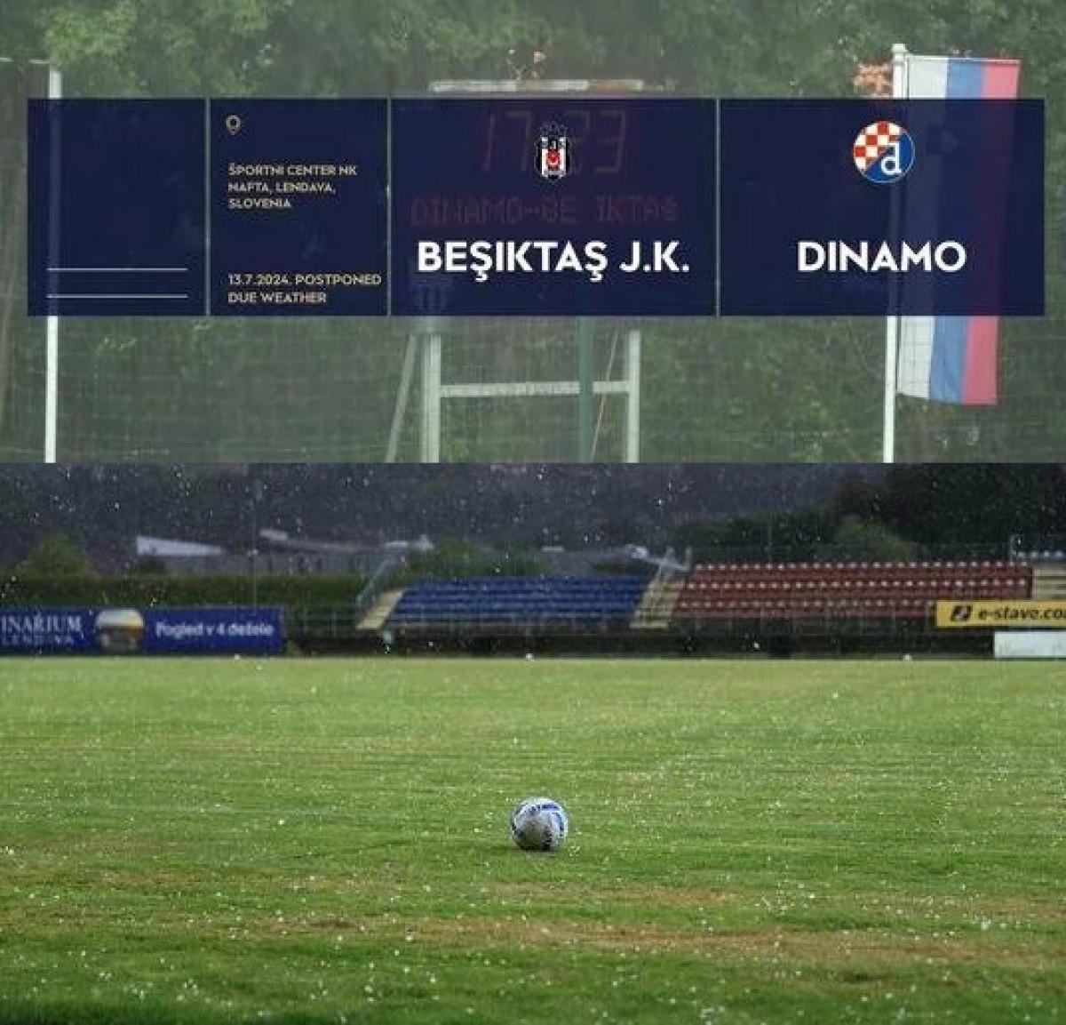 Beşiktaş'tan yapılan açıklamada, "GNK Dinamo Zagreb ile oynanması planlanan hazırlık maçı, sağanak yağış ve dolu nedeniyle maçın hakemi tarafından iptal edilmiştir." denildi.