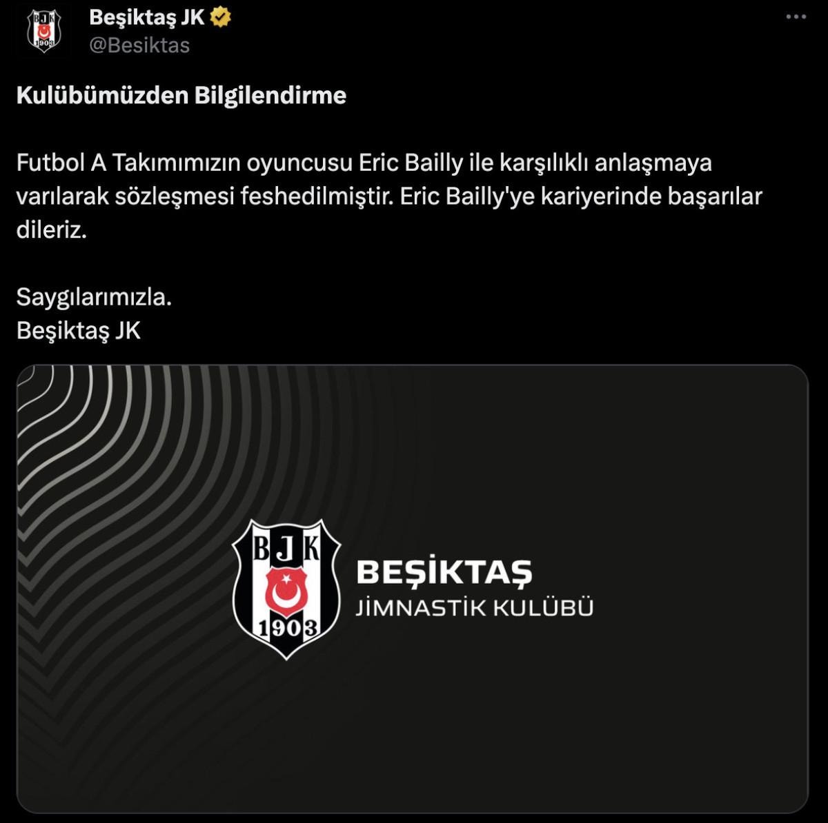 Bailly, Fenerbahçe derbisinin ardından Vincent Aboubakar, Valentin Rosier, Jean Onana ve Rachid Ghezzal ile birlikte kadro dışı bırakılmıştı.