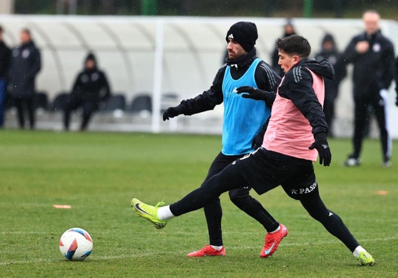 Pas ve 5’e 2 çalışmasıyla başlayan idman, dar alanda oynanan çift kale maçla sona erdi.