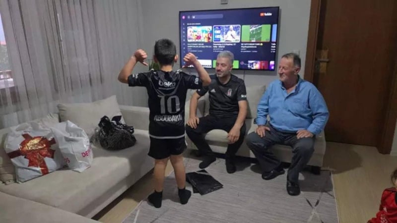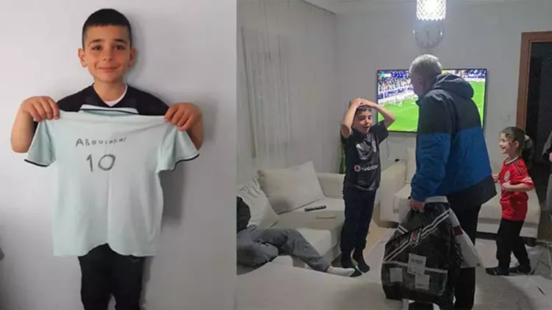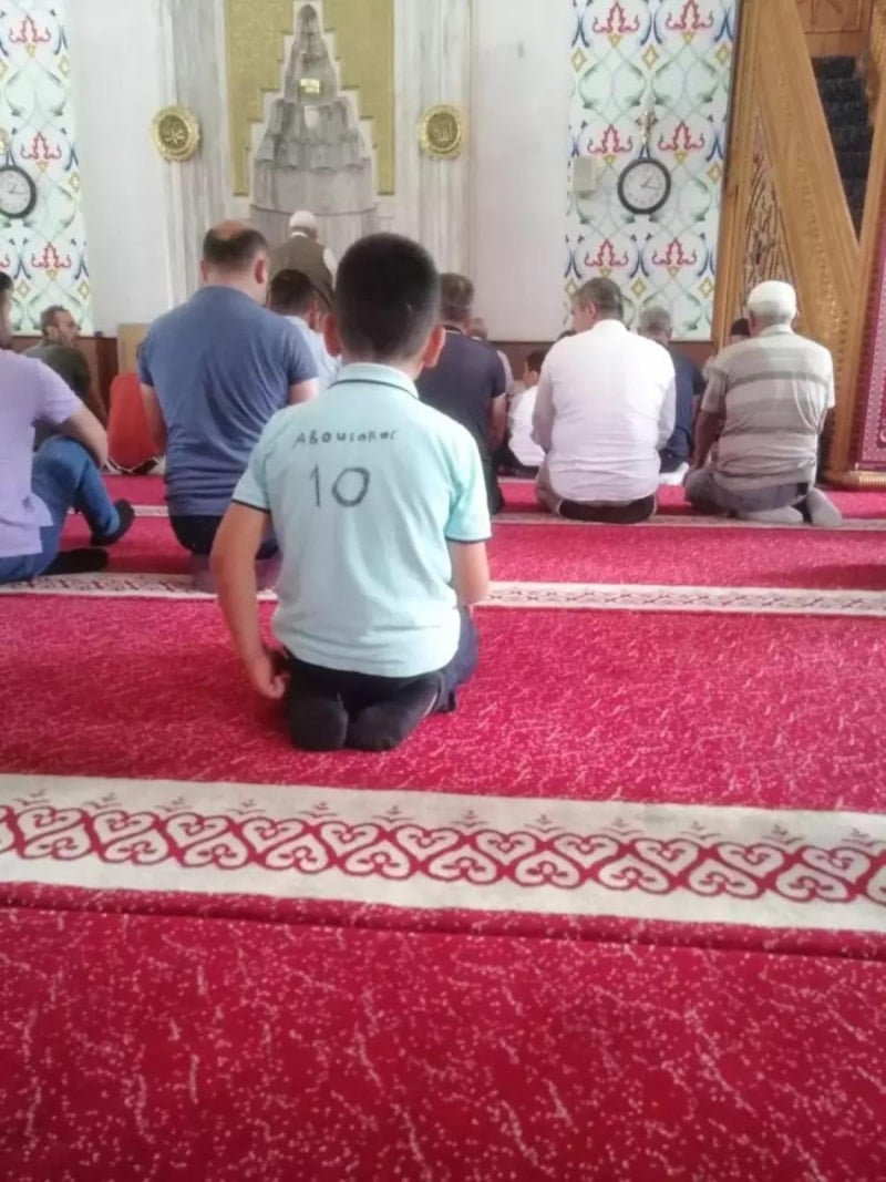 Düzce’nin Boğaziçi beldesine bağlı Şekerpınar Mahallesi’nde oturan Muhammed Emir Sönmez, kendi el yazısı ile üzerine siyah-beyazlı futbolcu Aboubakar’ın adını yazarak taraftarı olduğu Beşiktaş’ın formasına benzetmeye çalıştığı tişörtüyle geçen hafta cuma namazına gitti. Camideki vatandaşlardan biri, namaz kılan çocuğun fotoğrafını çekip sosyal medyada paylaştı.