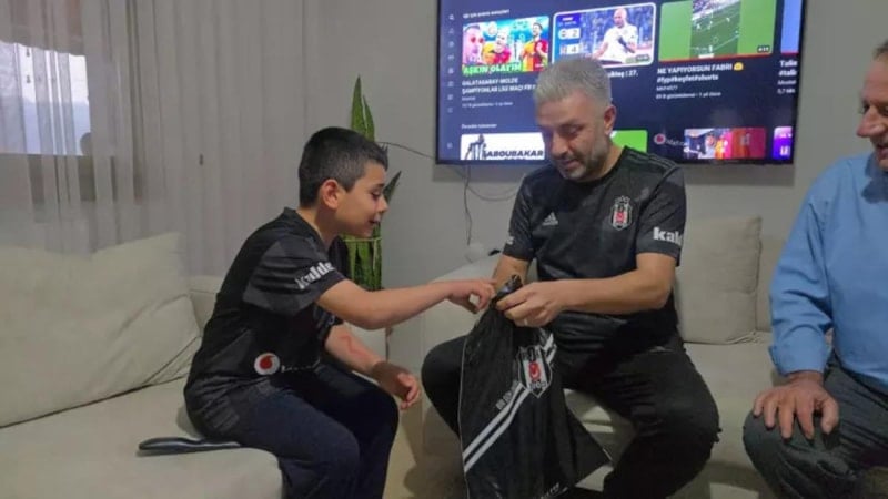 Daha önce Beşiktaş formasına benzetmeye çalıştığı tişörtüyle viral olan genç taraftar Muhammed Emir'e siyah-beyazlı takımın forması hediye edildi.