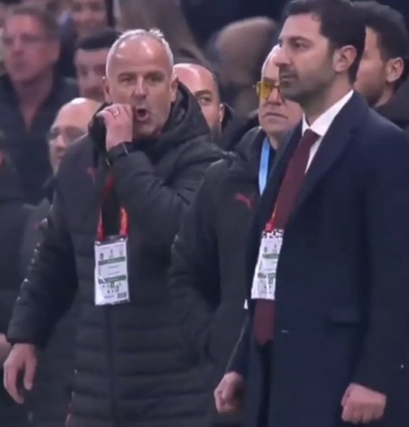 Yayıncı kuruluş kameralarına yansıyan görüntülerde; Galatasaray yedek kulübesinde kaleci antrenörü Fadıl Koşutan'ın, Futbol A Takım İdari Direktörü Uğur Yıldız'a 'Sarı kartı bana göster' şeklinde işaretler yaptığı görüldü.