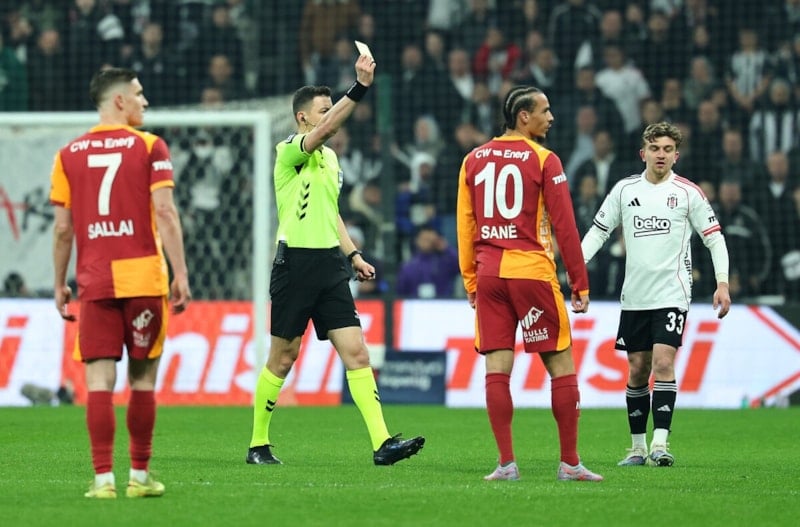 Galatasaray'ın Beşiktaş'ı 1-0'lık skorla yendiği derbi maçında hakem Ozan Ergün, 10 sarı ve 1 kırmızı kart gösterdi.