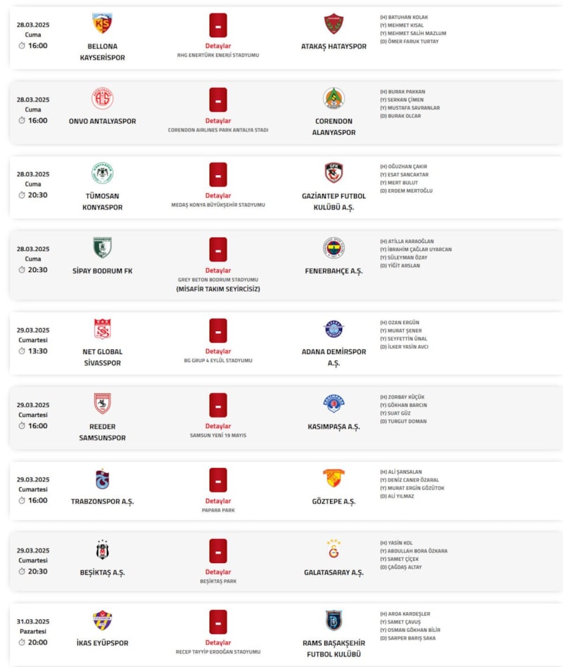 Söz konusu müsabakalarda görev yapacak hakemler de Türkiye Futbol Federasyonu'nun (TFF) resmi internet sitesinden açıklandı.