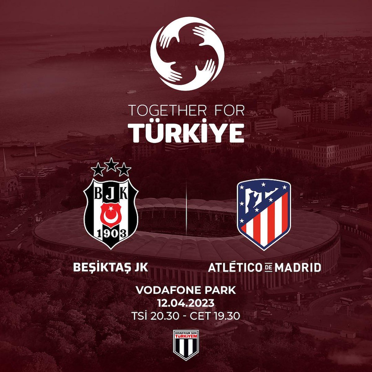 "Beşiktaşımız, 11 ilimizde hissedilen deprem felaketinden etkilenen vatandaşlarımızın yaralarını sarmak üzere, Atlético Madrid ile 12 Nisan Çarşamba günü saat 20.30'da Vodafone Park'ta dostluk maçında karşılaşacaktır.
