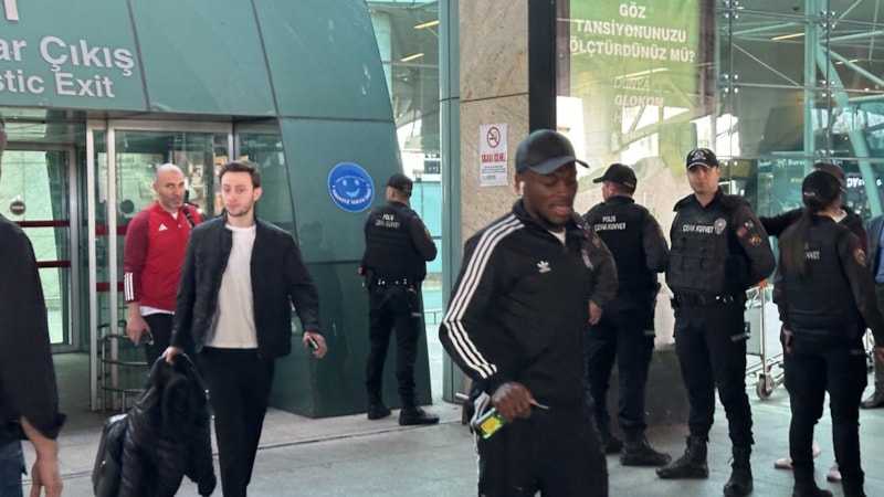 Ankara Esenboğa Havalimanı'na ulaşan Beşiktaş için geniş güvenlik önlemleri alınırken, siyah-beyazlı takımın taraftarları, oyuncuları havalimanında karşıladı.