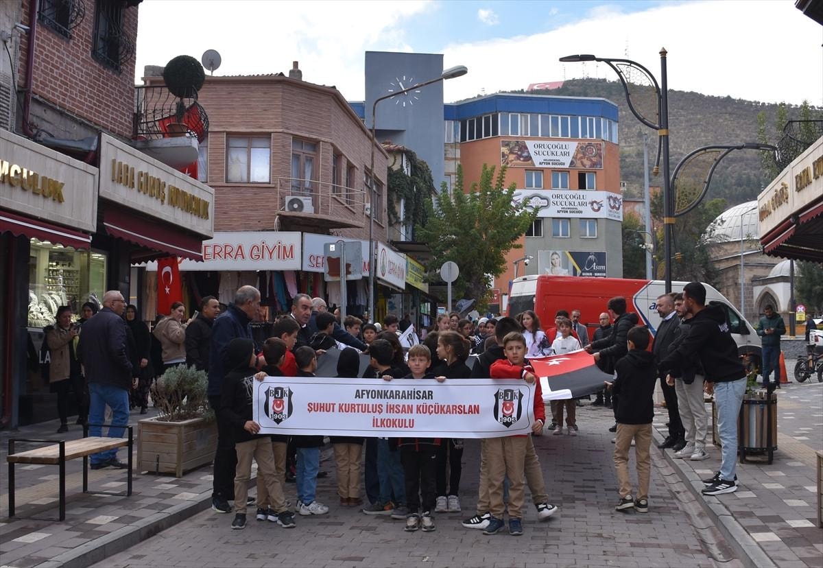 Etkinliğe katılanlar ve öğrenciler, daha sonra Zafer Meydanı'na kadar yürüdükten sonra Kocatepe'ye çıktı.