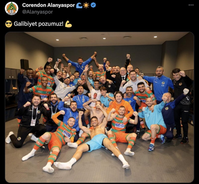 Karşılaşma sonrası Alanyaspor'un sosyal medya hesabından, "Galibiyet pozumuz!" notuyla futbolcuların soyunma odasında yaşadığı sevincin fotoğrafı paylaşıldı.