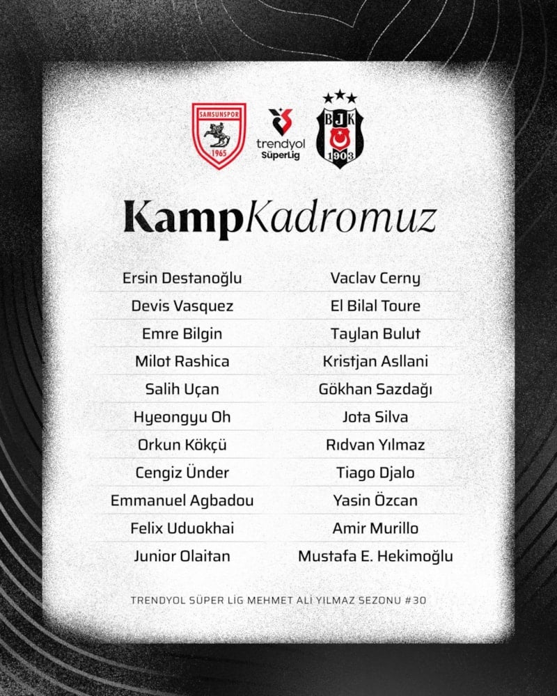 Sergen Yalçın yönetimindeki Beşiktaş, Samsunspor ile oynayacağı lig maçının kamp kadrosunu duyurdu.