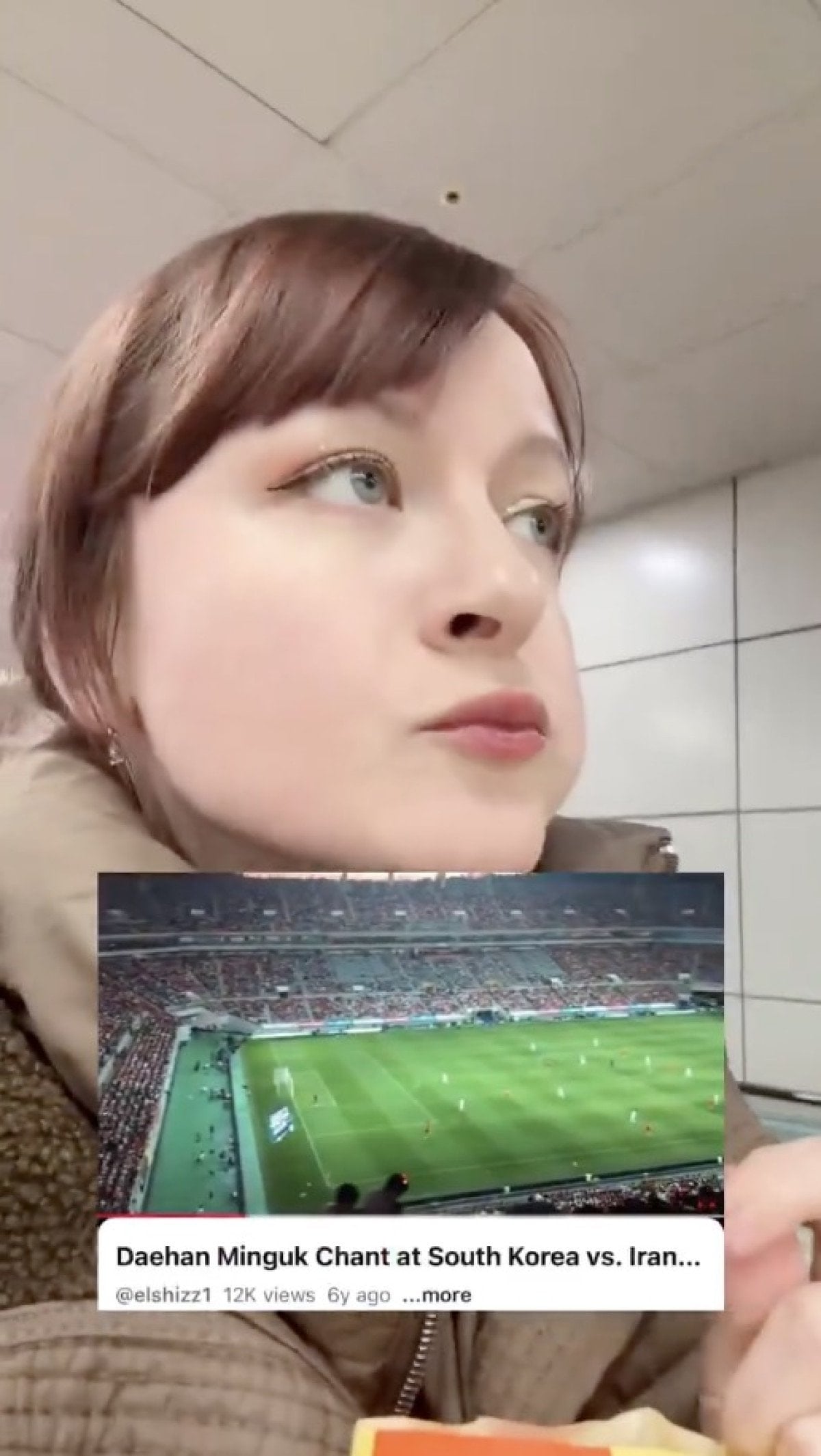 Güney Kore'deki en bilinen tezahüratı aktaran vatandaşımız, "Kore’de en fazla bilinen tezahürat şudur ve anlamı da Güney Kore’dir. Tezahüratımız şu, ‘Tehan Mingug’ Te-ha-min-guk diyoruz ve elimizi ba-ba-ba-ba diye çırpıyoruz. Elinizi dizinize de vurabilirsiniz." ifadelerini kullandı.