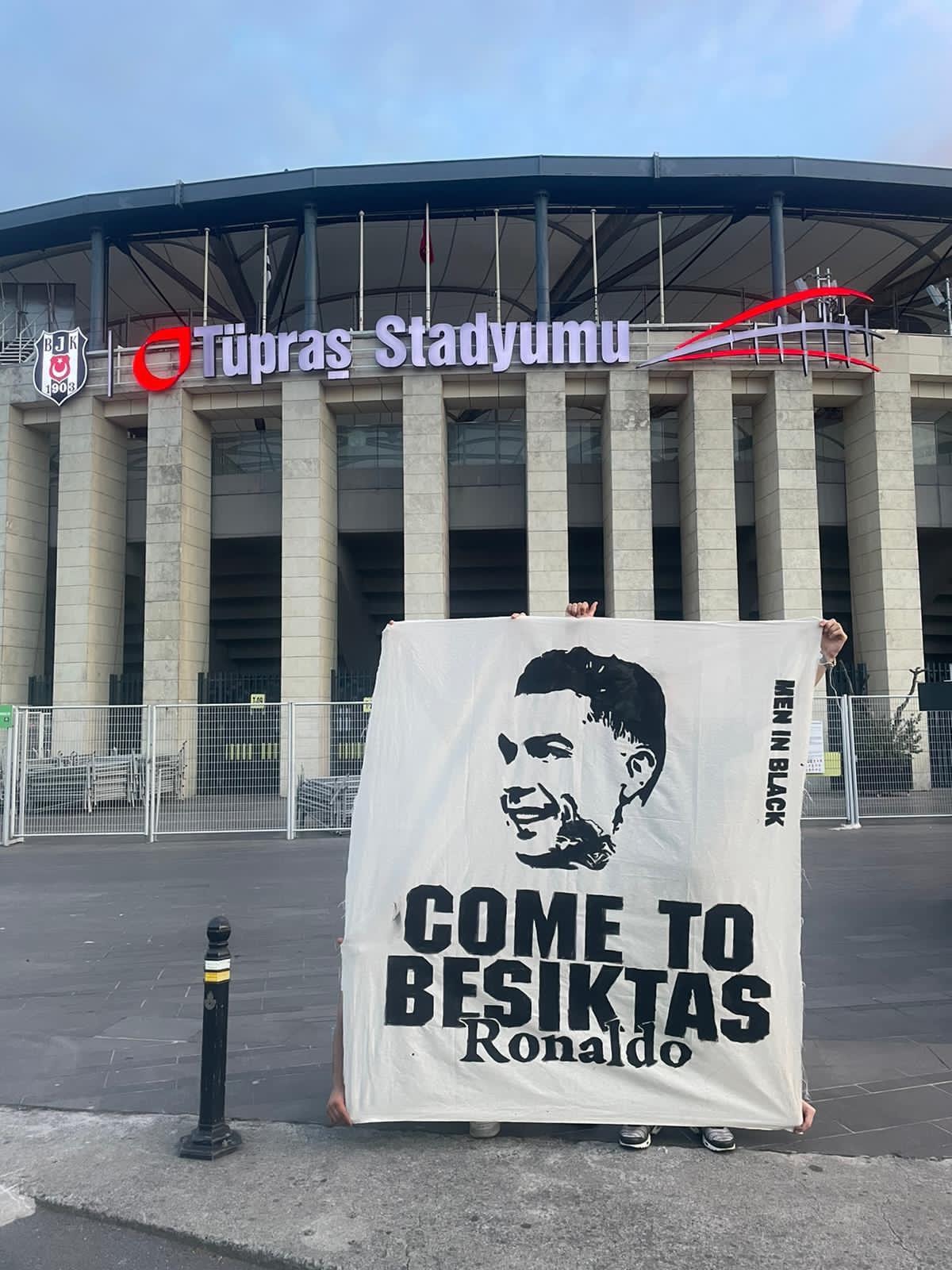 Bir grup Beşiktaş taraftarı, İstanbul'daki Portekiz Fahri Konsolosluğu ve Tüpraş Stadyumu önünde toplandı ve "Come To Beşiktaş Ronaldo" yazılı pankart açarak Portekizli süper yıldıza mesaj gönderdi.