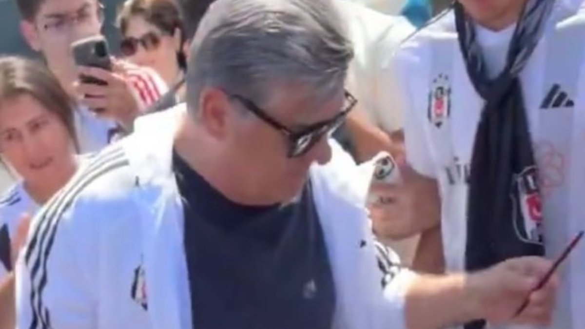 Bir Beşiktaş taraftarı, Orkun Kökçü'yü transfer eden Serdal Adalı'nın yanına giderek onu ayağından öptü.