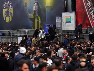 Fenerbahçe - Beşiktaş derbisini tribünden takip edecek Siyah-beyazlı taraftarlar, saat 14.00'te Vodafone Park kuzey kale arkasındaki Büyükşehir Belediyesi Garajı önünde toplandı.