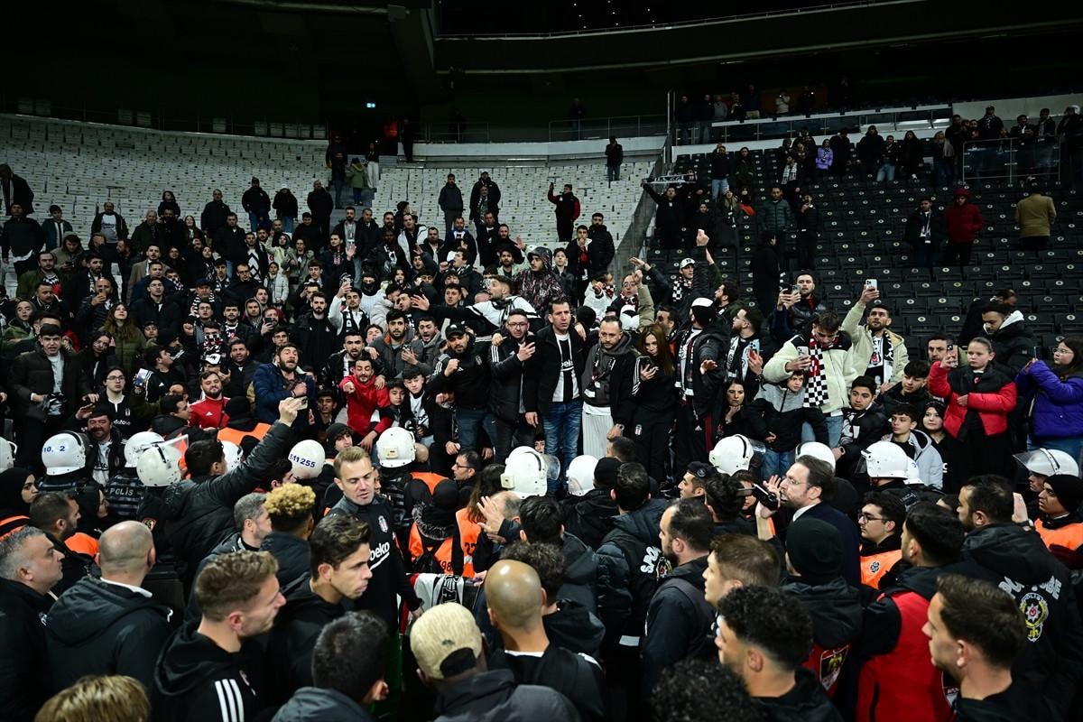 Beşiktaşlı oyuncular, daha sonra sahaya geri döndü ve tribünlerden özür diledi.