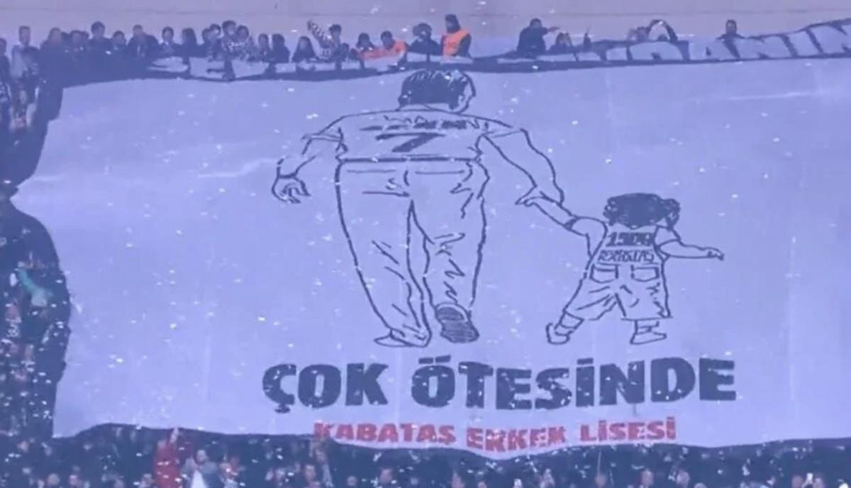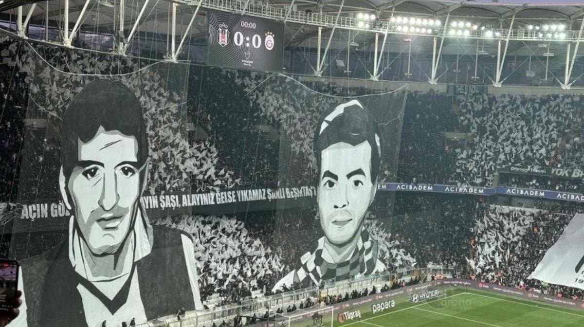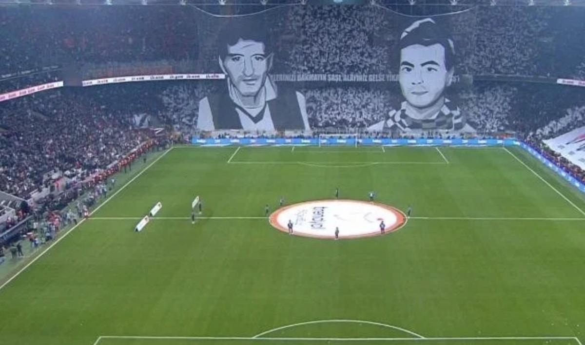 Bu müsabakada Beşiktaşlı taraftarlar, iki tribünde koreografi yaptı.