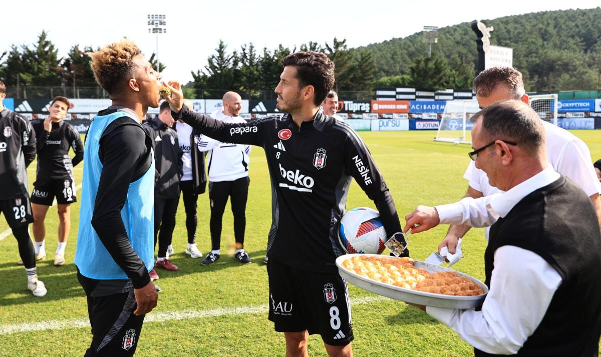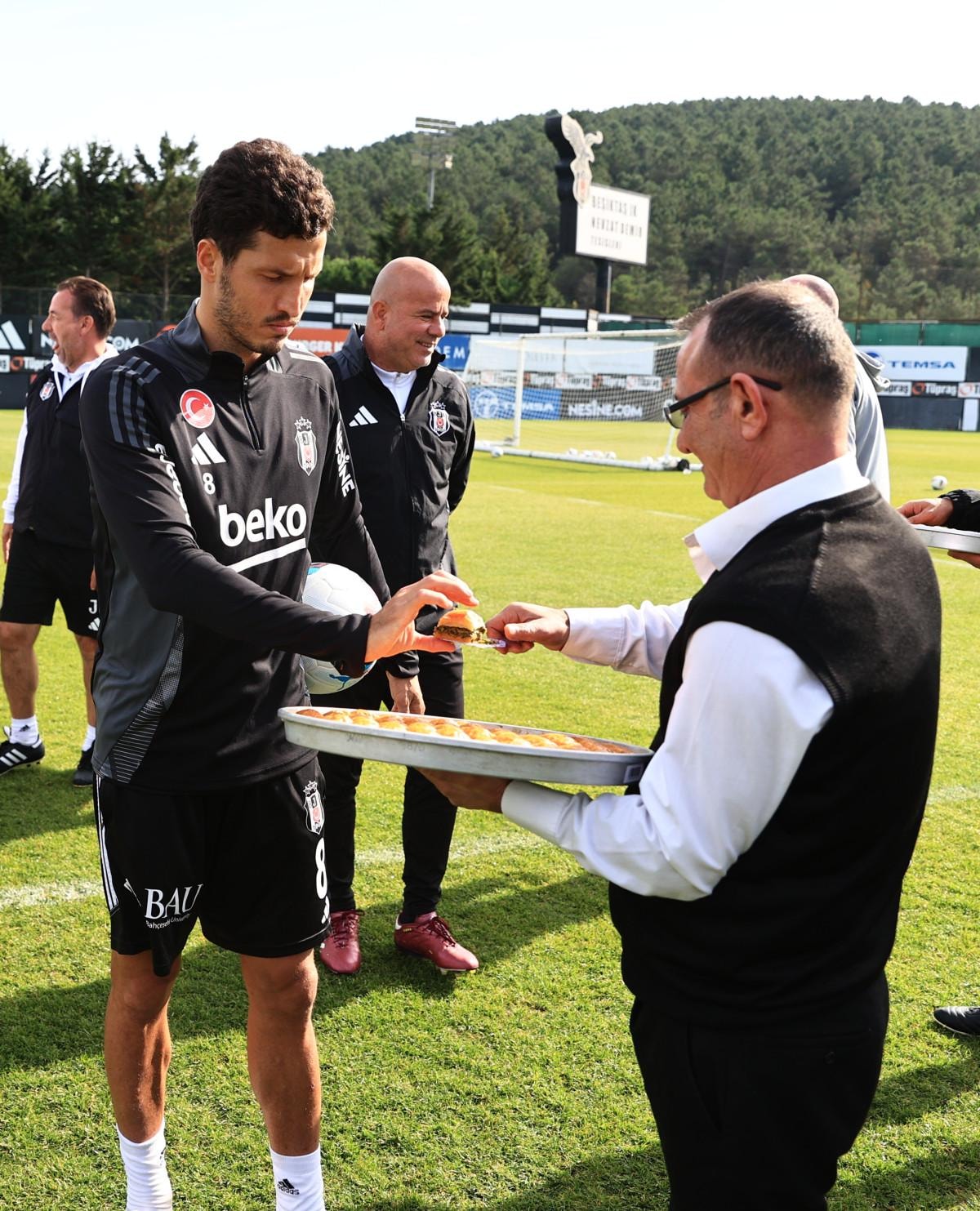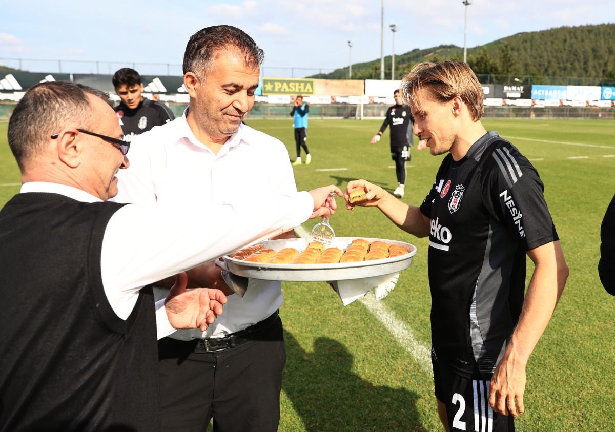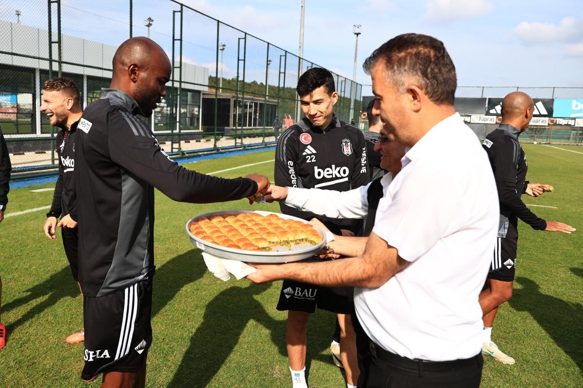 Antrenmanın ardından bir araya geldikleri siyah-beyazlı futbolculara Kasımpaşa maçında başarılar dileyen yönetim, teknik heyete ve futbolculara tatlı ikram etti.