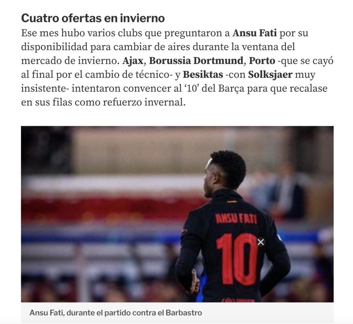 Fati'nin geçen zamanda istediği süreyi bulamamaması nedeniyle hayal kırıklığına uğradığı ve yaz aylarında bu kez Barcelona'dan ayrılmayı düşündüğü belirtildi.