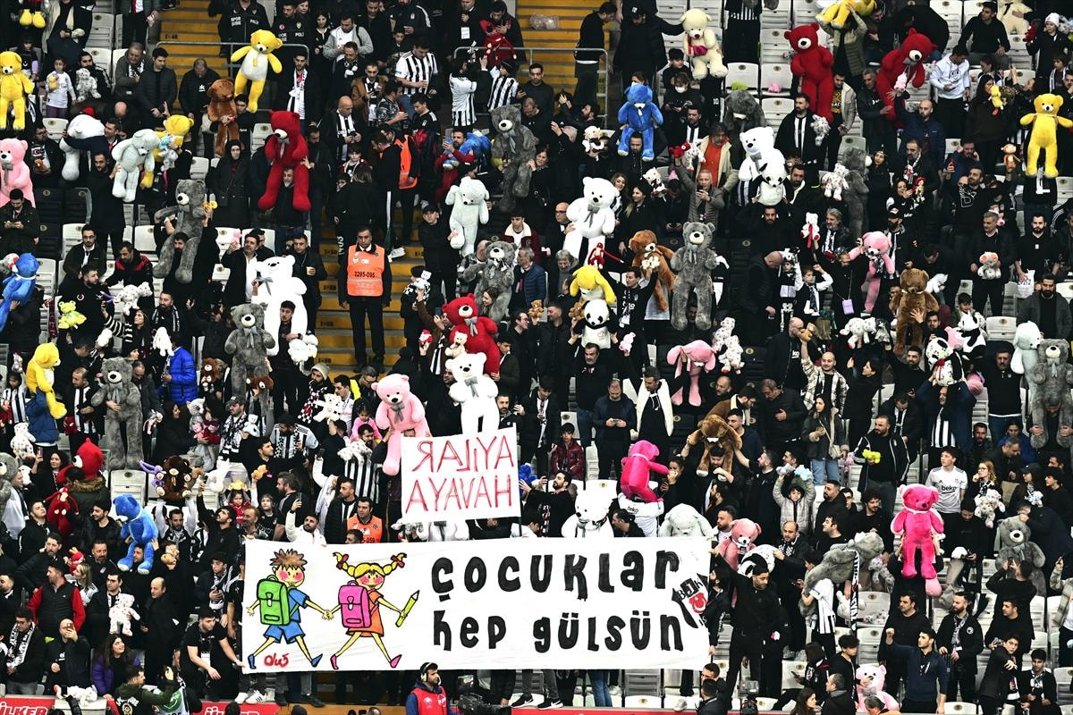"Beşiktaş taraftarları depremden kurtulan çocuklara oyuncak bağışlarken, maç sırasında futbol sahasına oyuncak ayılar yağdı."