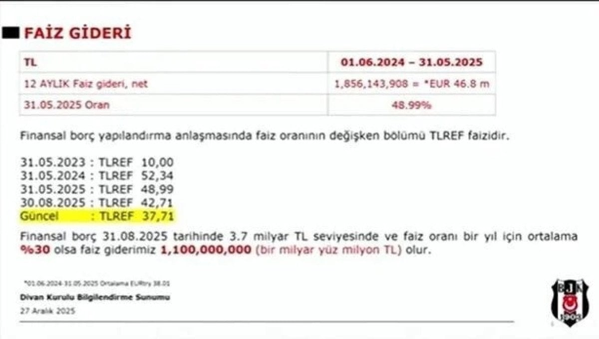 Şentürk, siyah-beyazlıların 31 Ağustos 2025 itibarıyla 22 milyar 531 milyon 664 bin 293 TL borcu olduğunu belirtti.