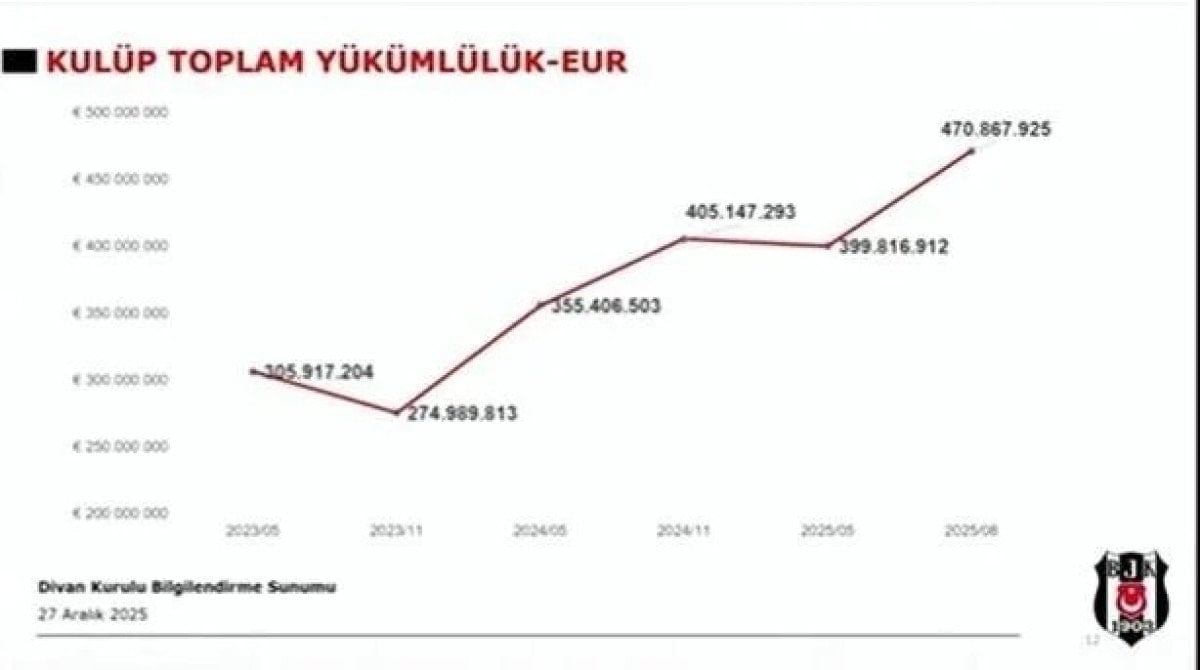- Beşiktaş Kulübü'nün borcu 31 Ağustos 2025 itibarıyla 22 milyar 531 milyon 664 bin 293 TL olarak açıklandı.