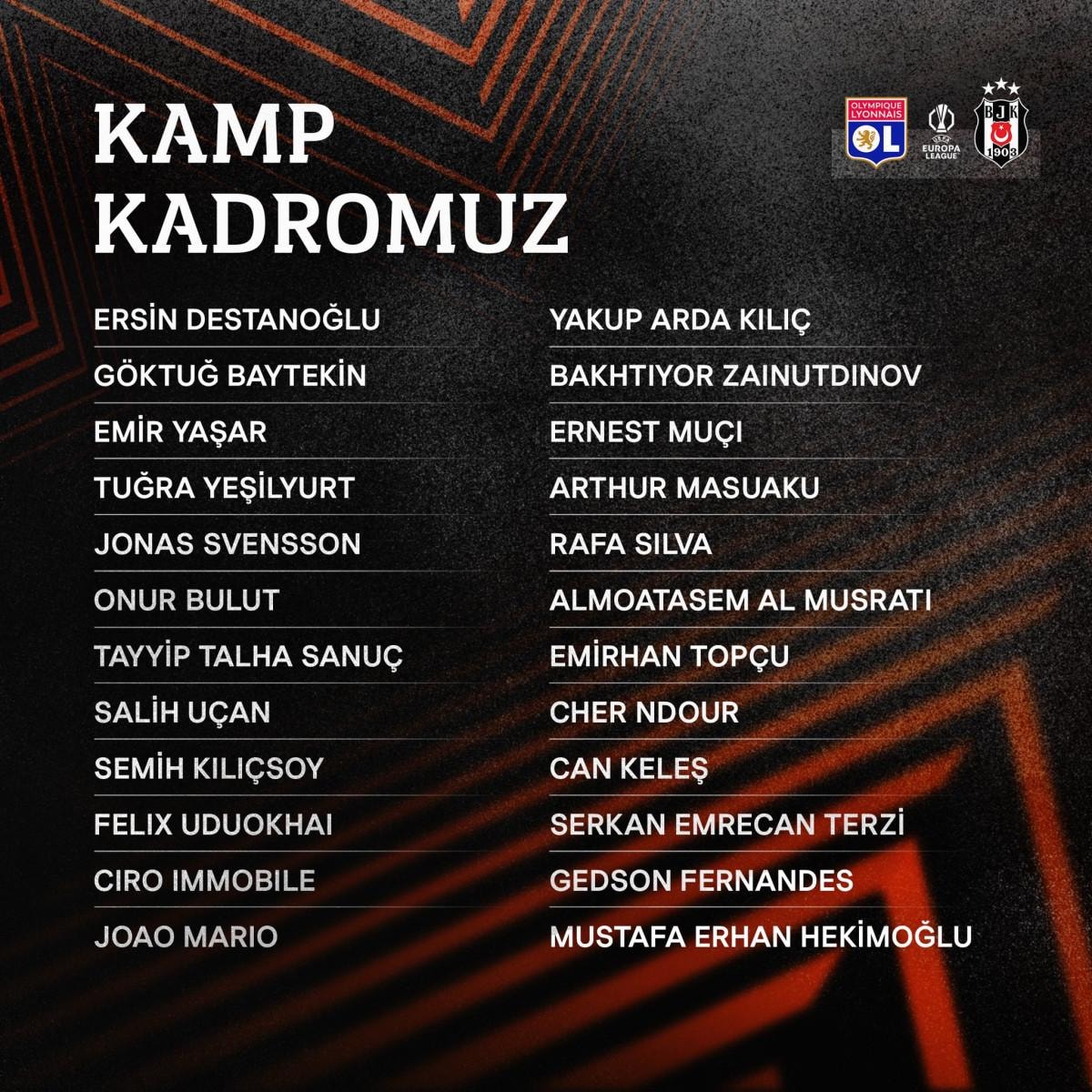 Siyah-beyazlılarda sakatlığı bulunanan Mert Günok, Gabriel Paulista, Milot Rashica ve Necip Uysal yer almadı.
