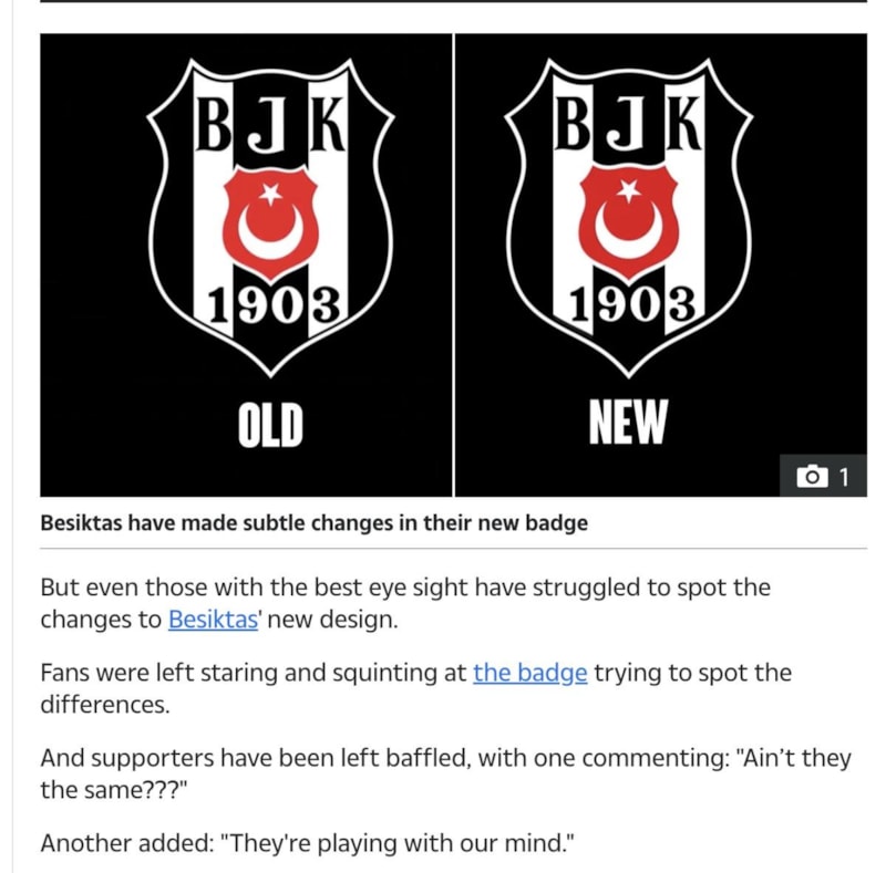 İngiliz basınından The Sun, Beşiktaş'ın kulüp armasını yenilemesini mercek altına aldı. Haberde, 'Beşiktaş'ın yeni kulüp armasındaki farklılıkları görebiliyorsanız, şahin gözlere sahipsiniz demektir' yorumu dikkat çekti.