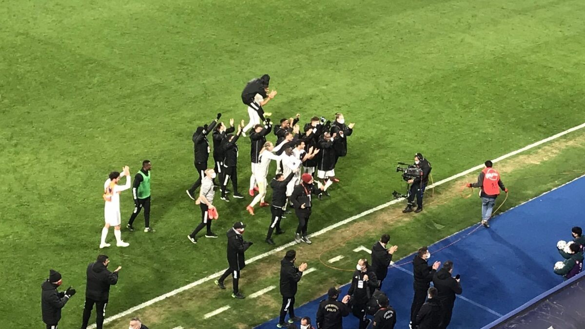 Siyah-beyazlı futbolcular bitiş düdüğünün ardından Başakşehir maçında cezalı olduğu için locada maçı takip eden Sergen Yalçın'ın bulunduğu bölgeye giderek 3 puanı kutladı.