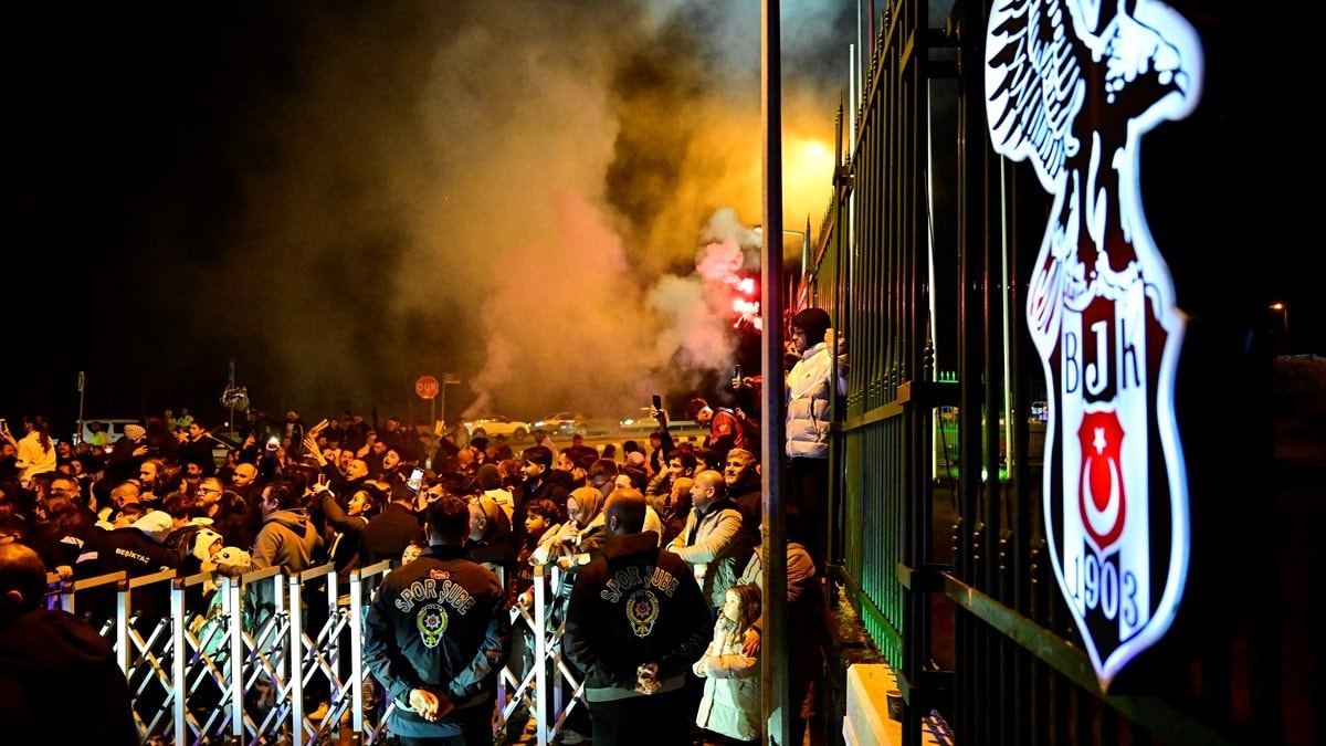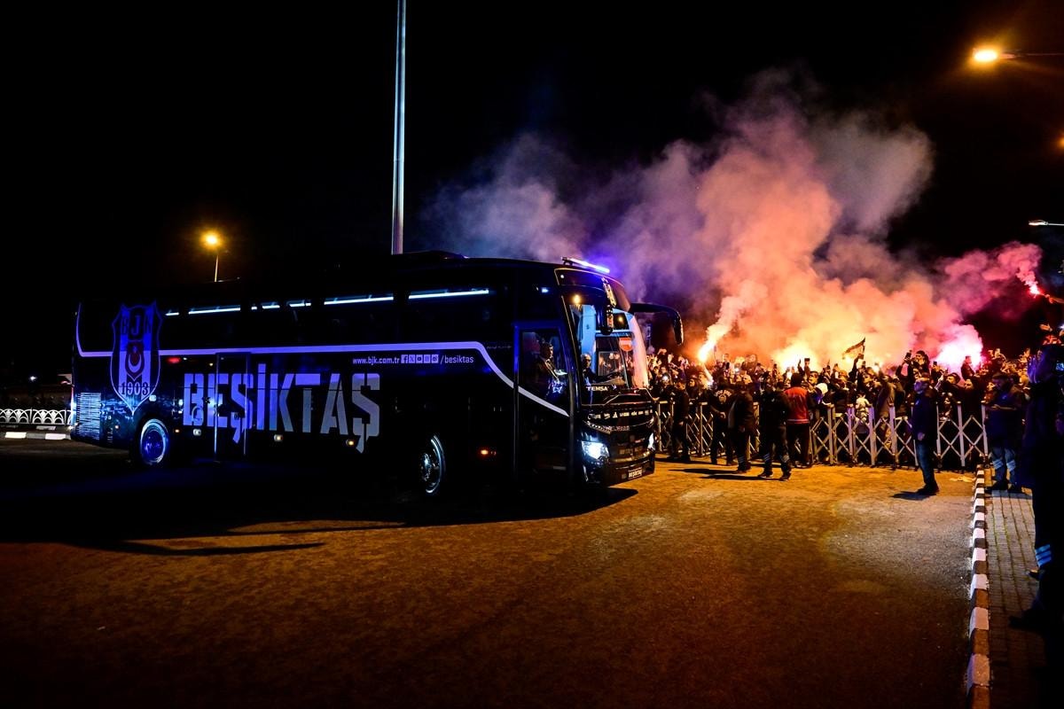 Ümraniye'deki BJK Nevzat Demir Tesisleri'nin girişinde yaklaşık 100 siyah-beyazlı taraftar, derbinin ardından takım otobüsünü bekledi.