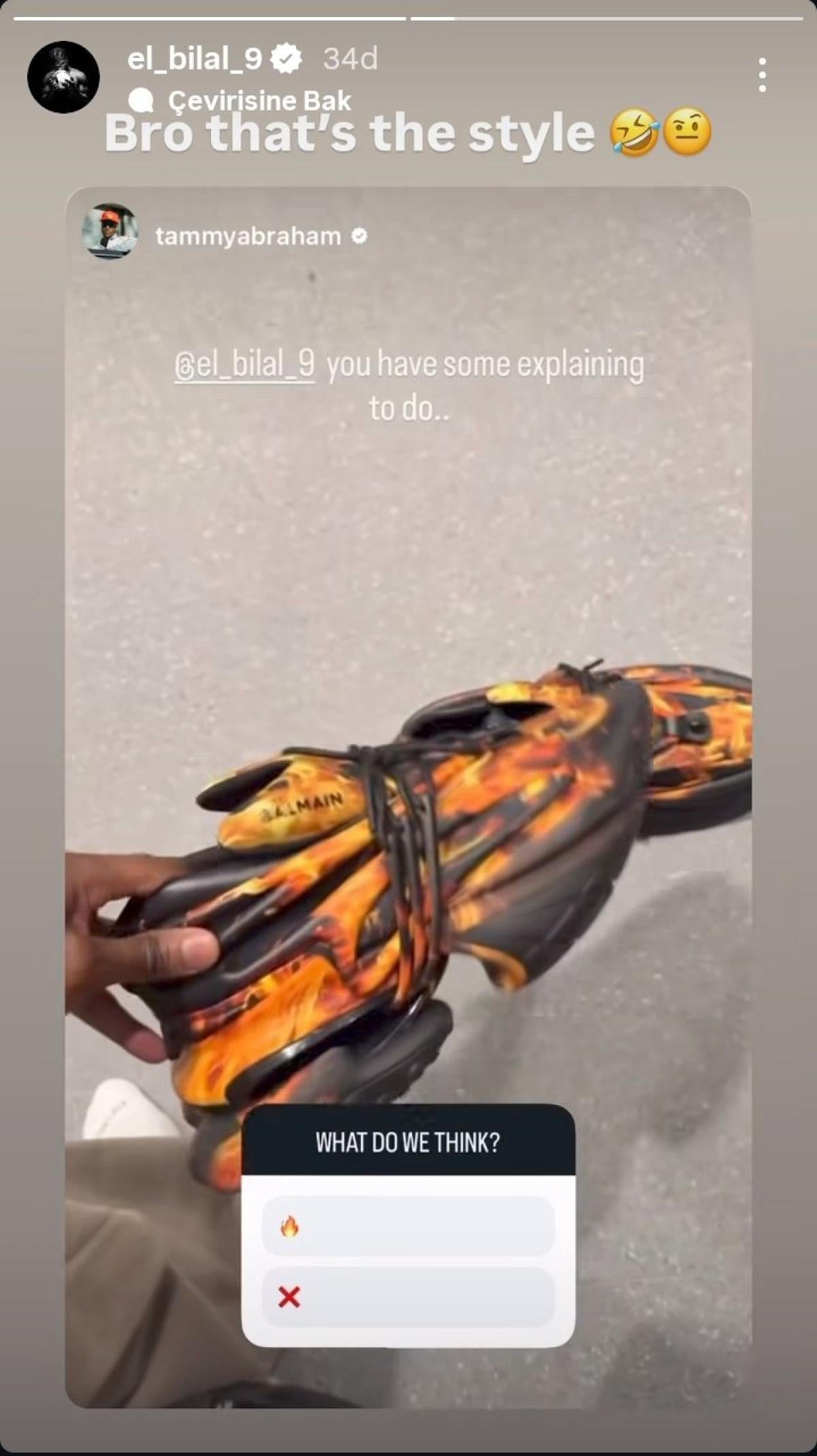 Toure'nin ayakkabıları ve kıyafetleri nedeniyle esprili paylaşımlar yapan Abraham, takipçilerine genç oyuncunun tarzını sormayı da ihmal etmedi.