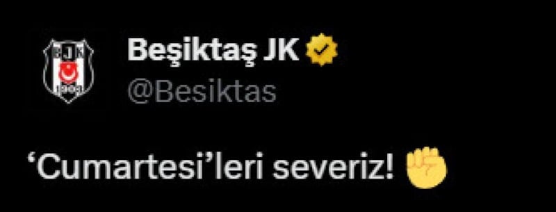 Beşiktaş, yaptığı paylaşımda "Cumartesi'leri severiz!" ifadelerini kullandı.