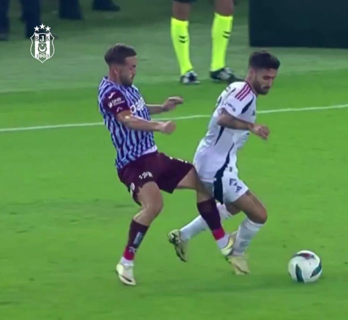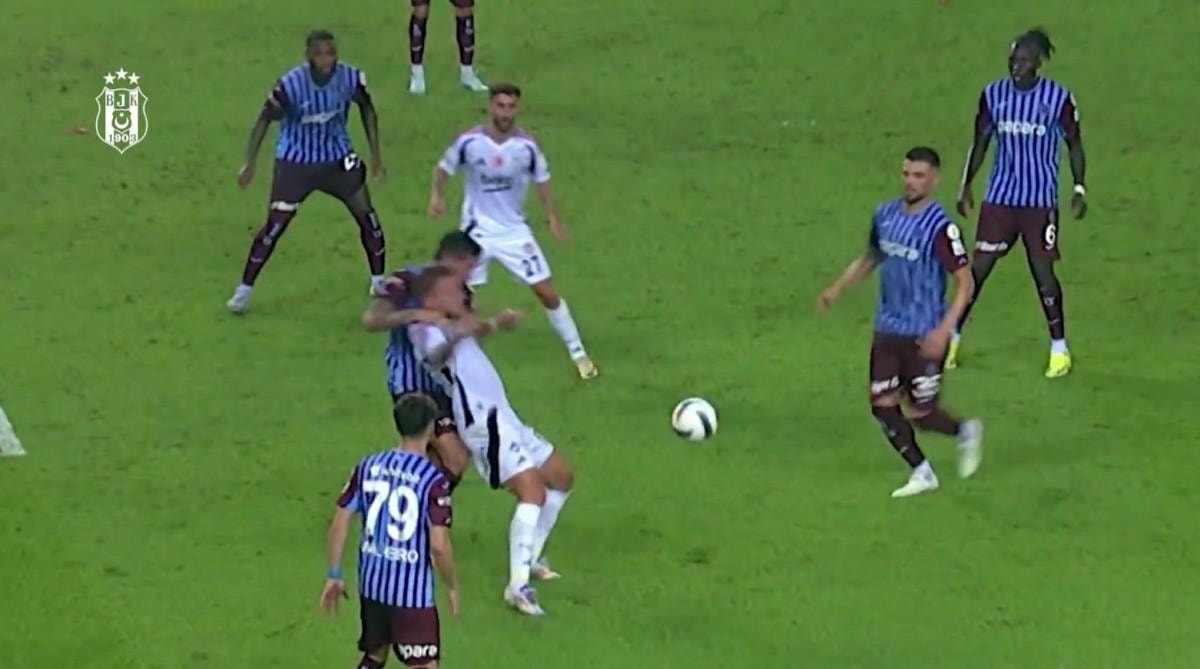 Trabzonspor-Beşiktaş maçı 9. dakikada Edin Vişça, Rafa Silva’ya, ortada topa müdahaleye dair de bir pozisyon yokken adeta hınçla ve sakatlamaya yönelik, arkadan aşil tendonu bölgesine doğru gaddarca tekmeyi basıyor. Maçın hakeminin pozisyonu açıkça gördüğü yayıncı kuruluşun yayınında net bir şekilde görülürken Ali Şansalan, Vişça’yı dostane bir şekilde sadece uyarıyor.