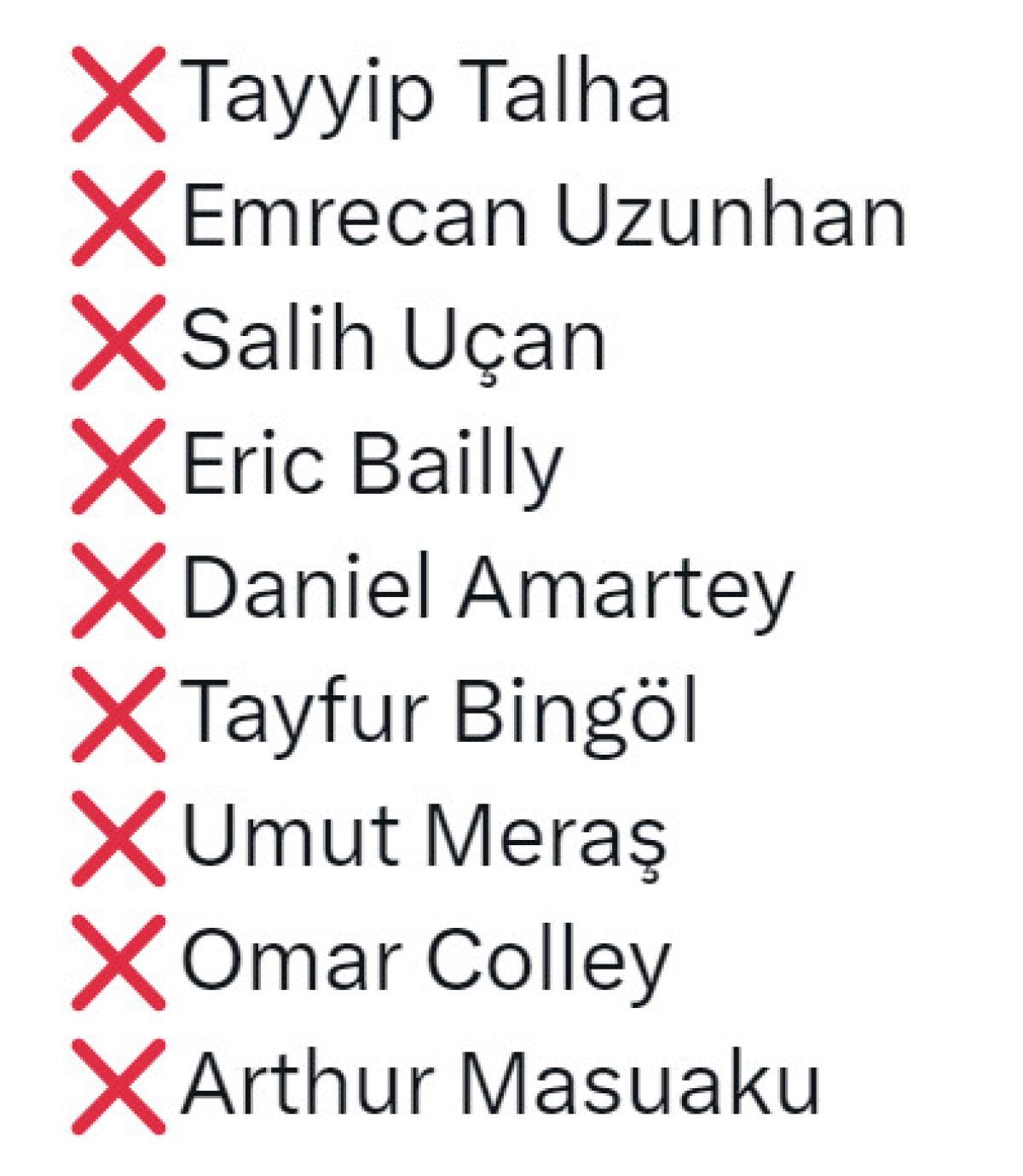 İşte siyah-beyazlı takımda sakat oyuncular: