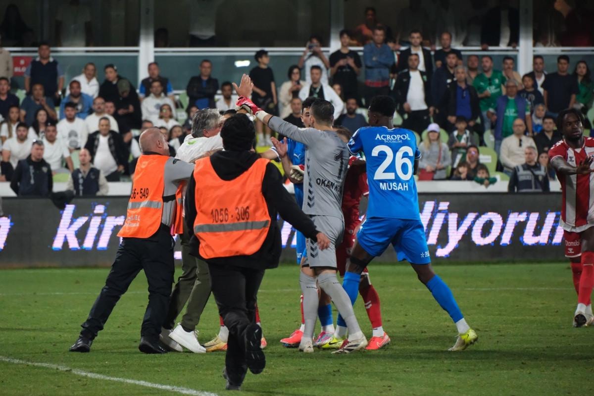 Bodrum FK yöneticisi Caner Tuna ile birkaç taraftar sahaya girerek hakeme tepki gösterdi.