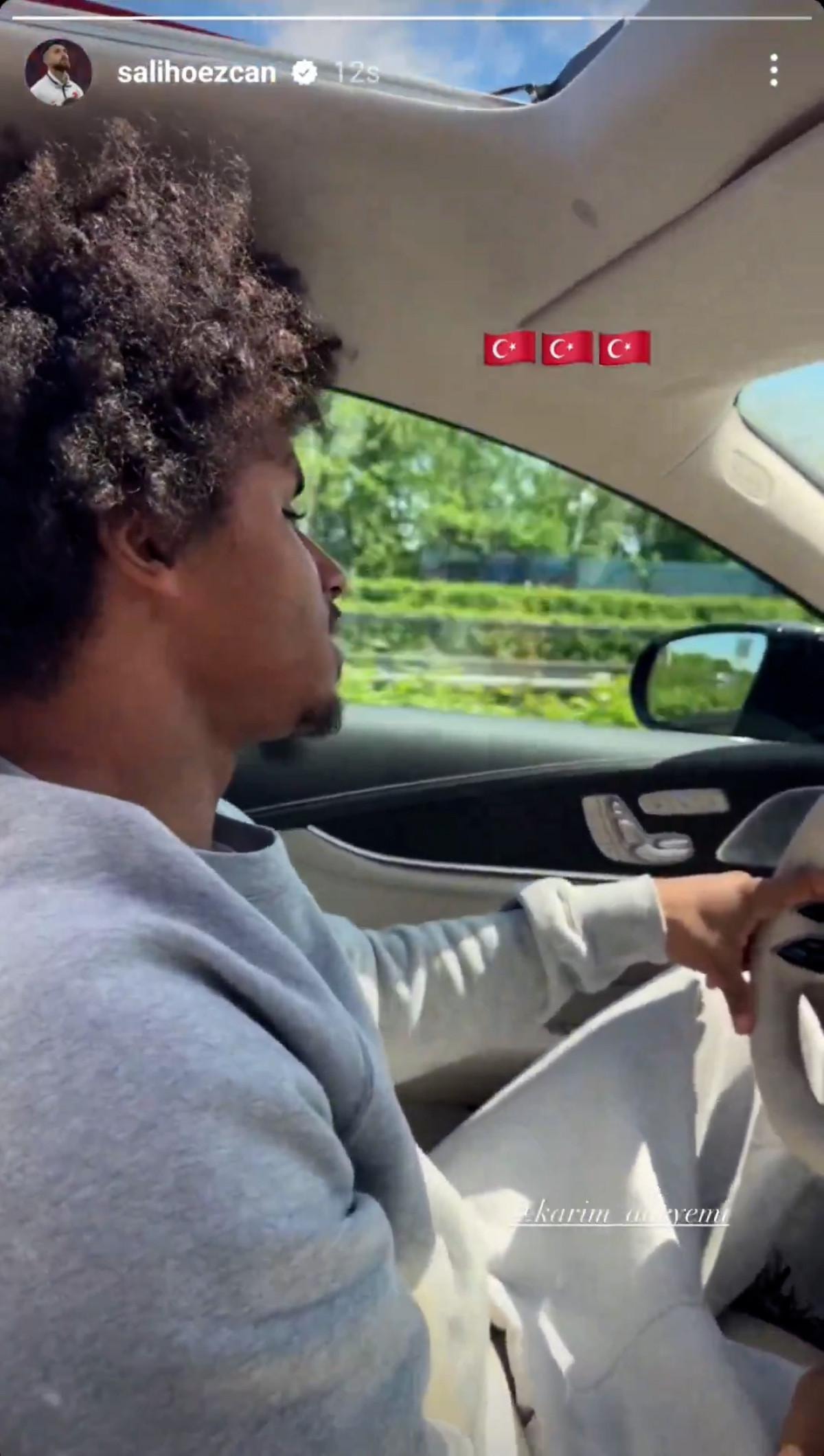 Özcan, Dortmund'dan takım arkadaşı Karim Adeyemi'yle arabada olduğu anları paylaştı.