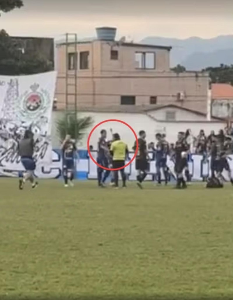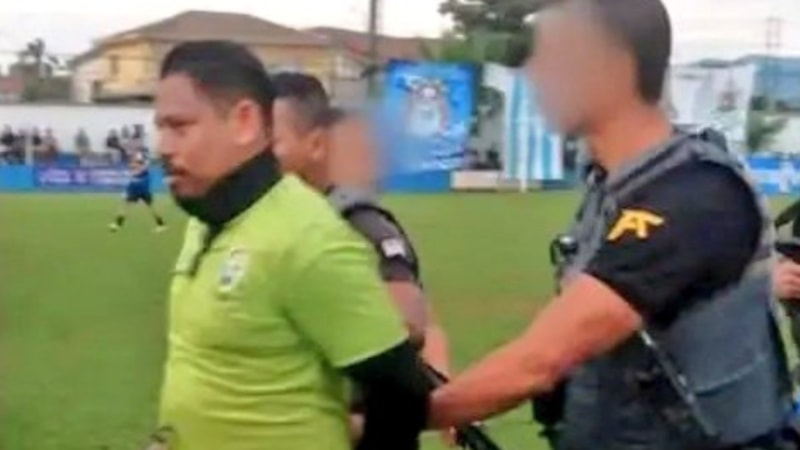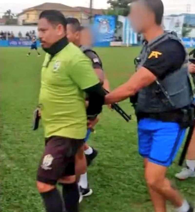 Amatör ligde oynanan bir maçta görev yapan 38 yaşındaki hakem Ederson Carlos da Silva, sahada maçı yönettiği esnada polis tarafından tutuklandı.