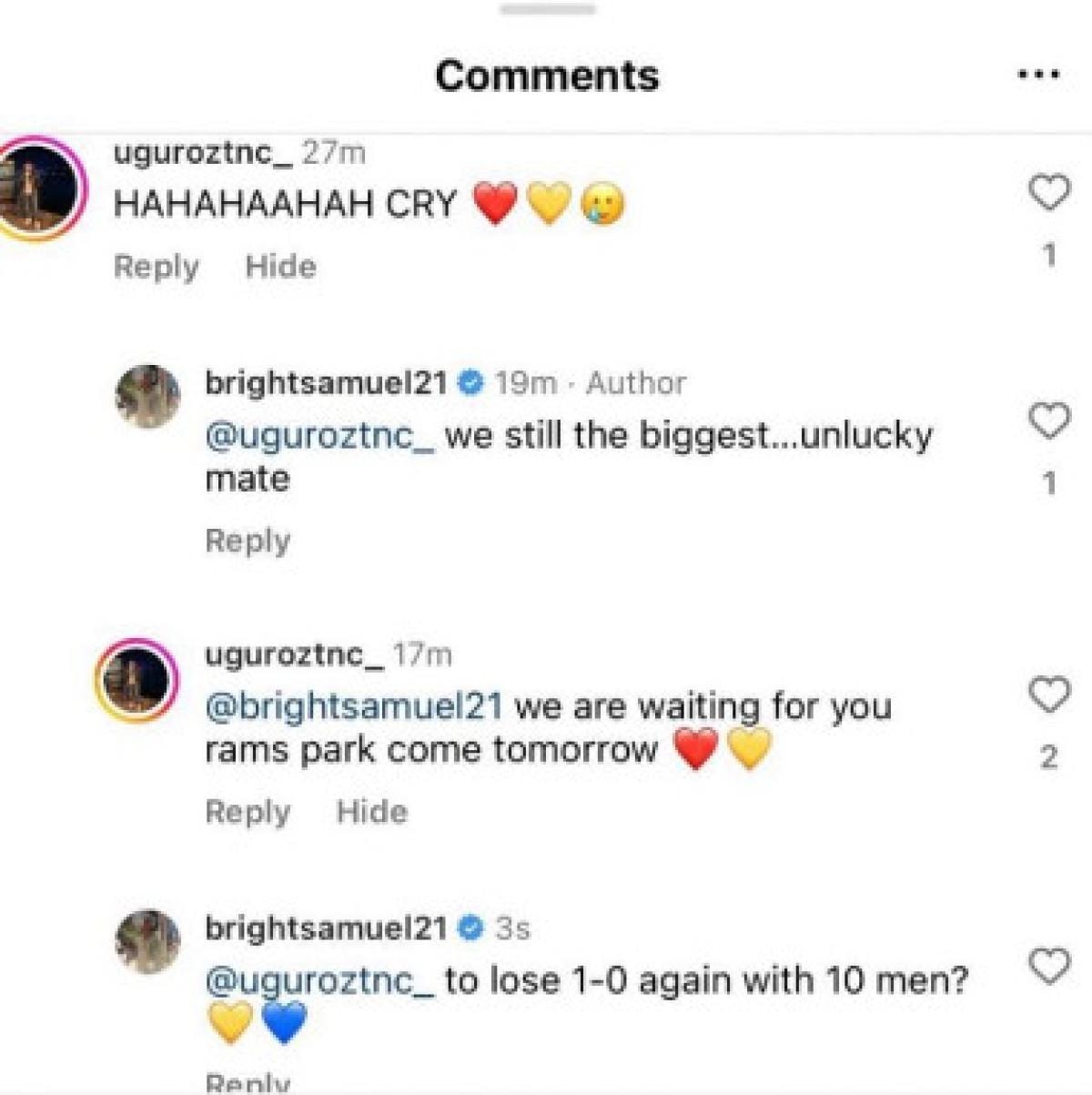 Bu yoruma da cevap veren Osayi Samuel, "Yine sizi 10 kişi yenmek için mi?" şeklinde sözler sarf etti.