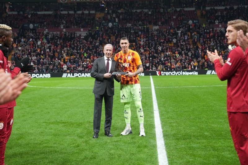 Galatasaray İkinci Başkanı Metin Öztürk de Uruguaylı kaleciye, plaket ve üzerinde 429 numaralı İngilizce 'Legend' yazılı olduğu forma hediye etti.