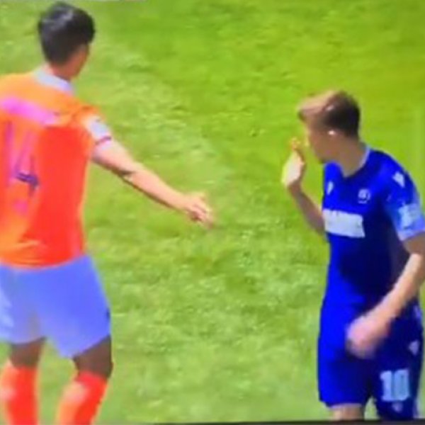 Karlsruher SC forması giyen bir futbolcu, yaşanan ikili mücadelenin ardından kendisine el uzatan rakibinin elini 'koronavirüs var' diyerek havada bıraktı.