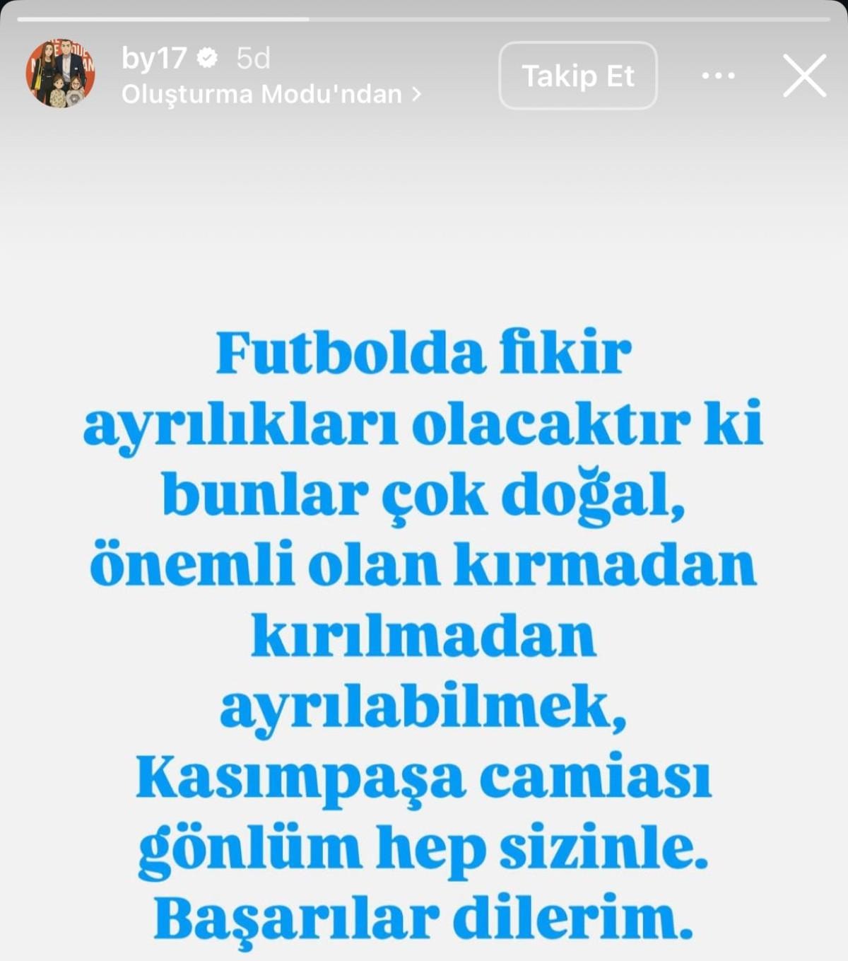 Futbolda fikir ayrılıkları olacaktır ki bunlar çok doğal, önemli olan kırmadan kırılmadan ayrılabilmek, Kasımpaşa camiası gönlüm hep sizinle olacak.