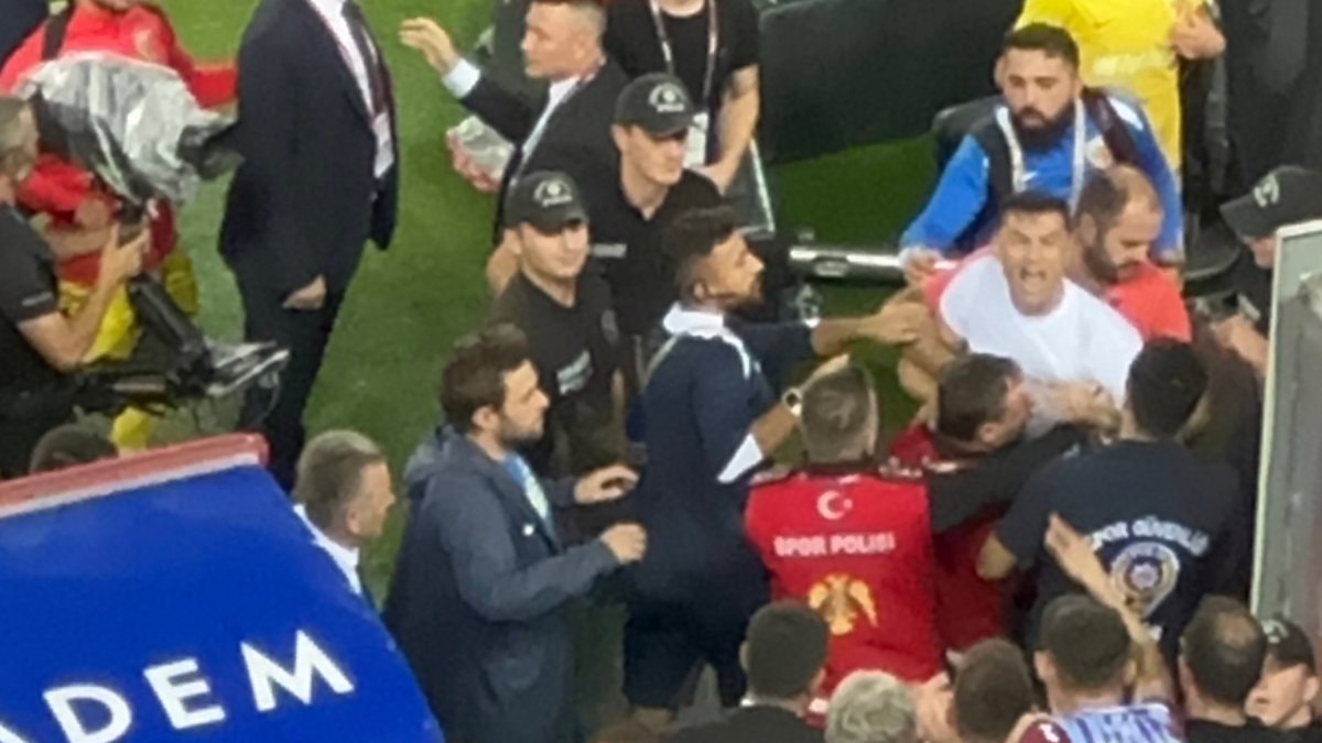 Trabzonspor taraftarlarının kendisine yönelttiği tepkiler karşısında bir anda tribünlere doğru hareketlenen Yılmaz'ı, güvenlik güçleri zorlukla sakinleştirebildi.