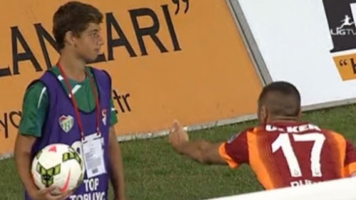 2013-14 sezonunda Bursa’da 1-1 biten Bursaspor-Galatasaray maçında top toplayıcılık yaparken Burak Yılmaz’dan tepki gören ve topun oyuna geç girmesini sağlayan o genç çocuk büyüdü ve formayı kaptı.