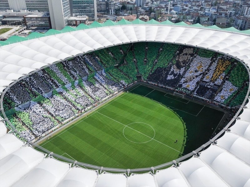 Kulüp başkanı Enes Çelik'in yer aldığı koreografide, Bursaspor'un kazandığı şampiyonluk kupaları resmedildi.