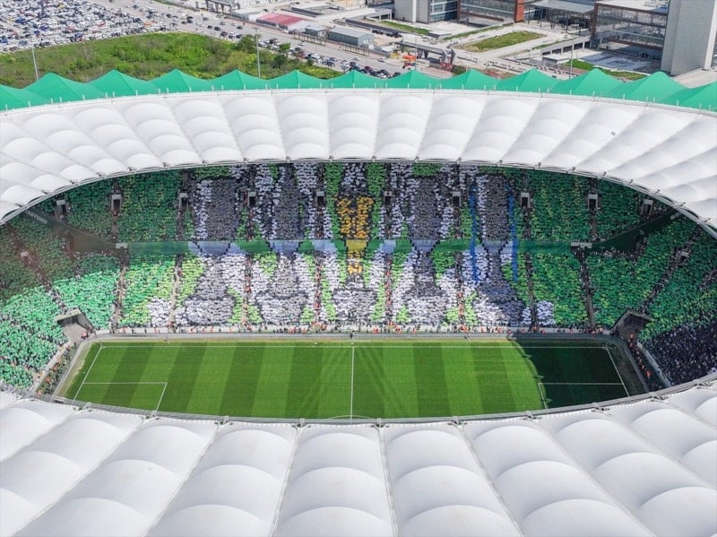 Günler öncesinden Teksas Taraftar Grubu, yaklaşık 40 bin kartonla stadın büyük bölümünü kapsayan bir koreografi hazırladı.