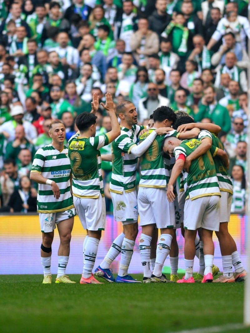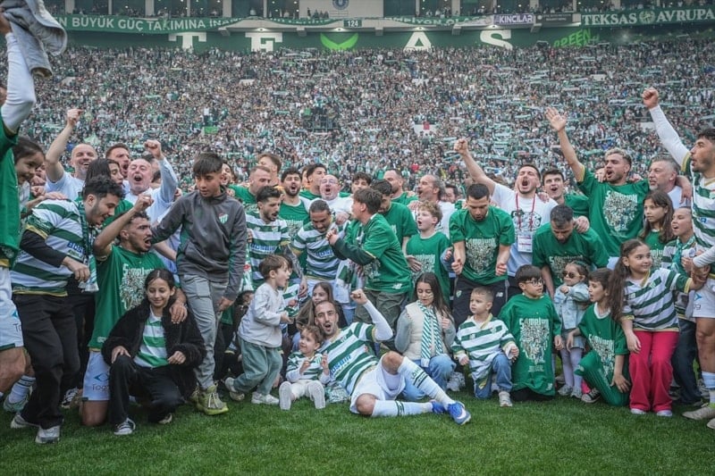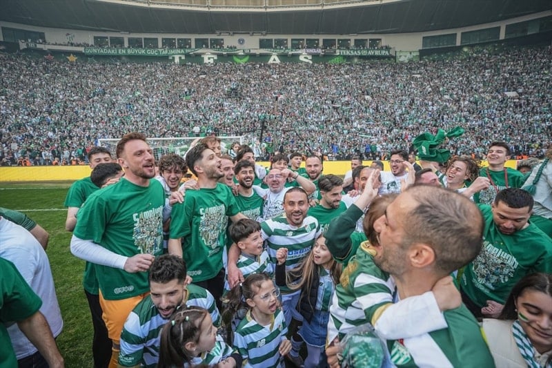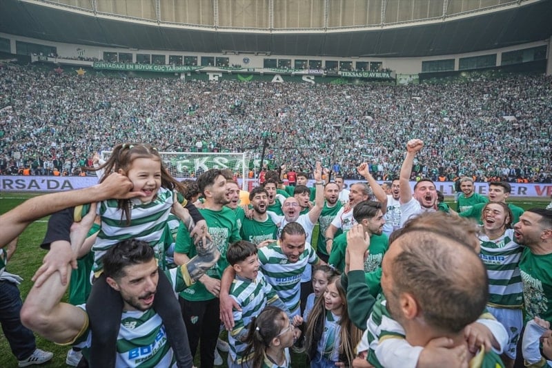 Süper Lig'in eski şampiyonlarından Bursaspor, 2. Lig Kırmızı Grup'u zirvede tamamlayıp 1. Lig'e yükseldi.