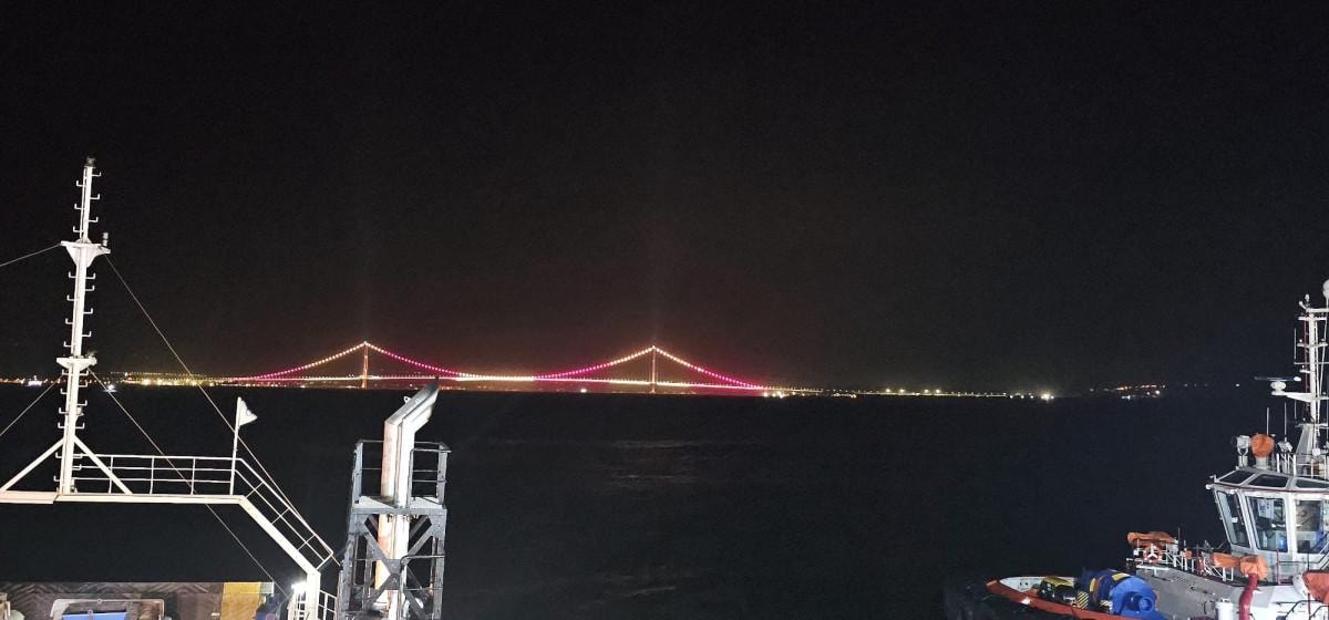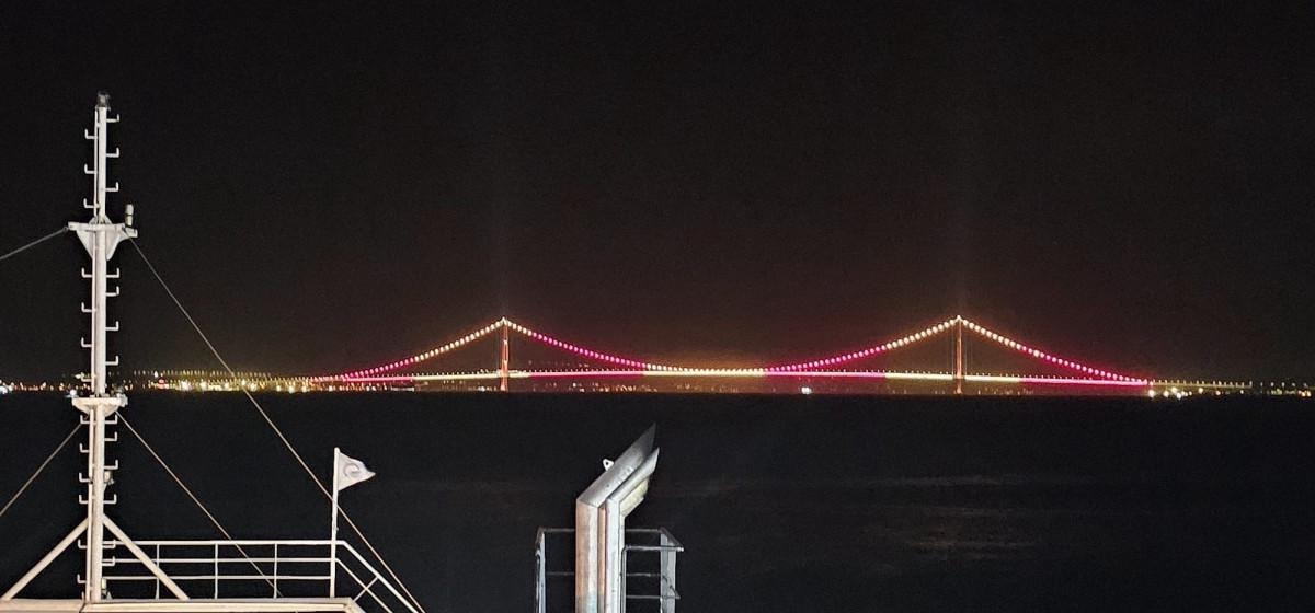 Galatasaray'ın 2024-2025 sezonunda şampiyon olmasının ardından Türkiye'nin en önemli projeleri arasında yer alan 1915 Çanakkale Köprüsü, sarı-kırmızı renklerle donatıldı.