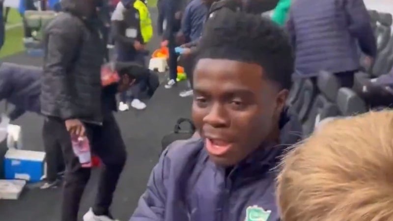 Maç sırasında Trabzonsporlu taraftarların olduğu tribünler Oulai’yi yanlarına çağırdı.