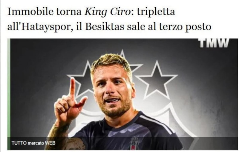Hatasyspor karşısında 3 golle yıldızlaşan Beşiktaş'ın santrforu Ciro Immobile, İtalya basınında gündem oldu. Tecrübeli oyuncu için 'Kral olarak geri döndü' ifadelerine yer verildi.